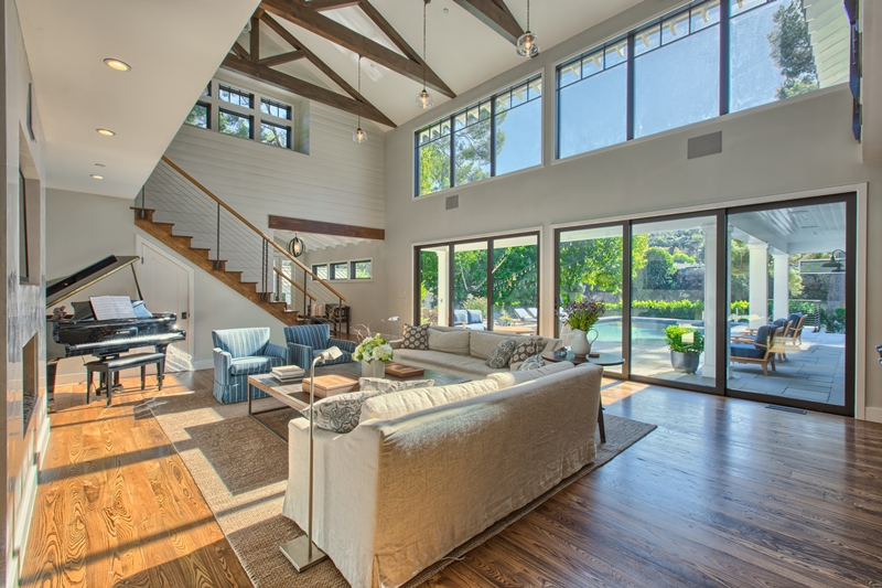 Originally designed for actors Tim & Elisa, this 5264 square foot, built from scratch home features 3 bedrooms, a screening room, offices for each, 2 story living room with vaulted wood ceilings, reclaimed hardwood floors and an unmatched transparency to the rear yard pool and patio. The detached Casita acts as a guest house when family isn’t visiting.